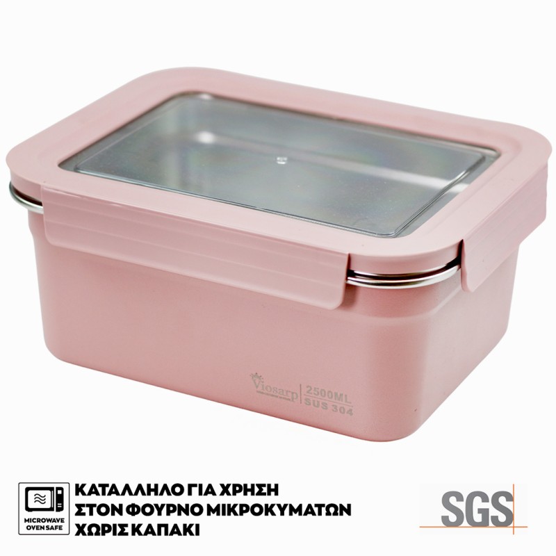 ΦΑΓΗΤΟΔΟΧΕΙΟ ΑΝΟΞΕΙΔΩΤΟ LOCK & FIT ΟΡΘΟΓΩΝΙΟ ΧΡΩΜΑΤΙΣΤΟ 2.5L 22x17.2x9.8cm VIOSARP