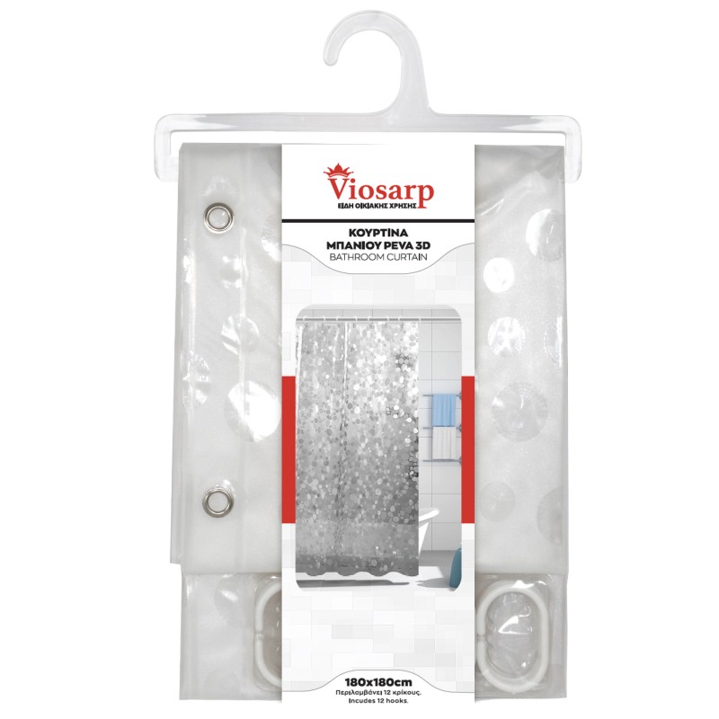 ΚΟΥΡΤΙΝΑ ΜΠΑΝΙΟΥ PEVA 180x180cm 3D ΑΝΑΓΛΥΦΗ