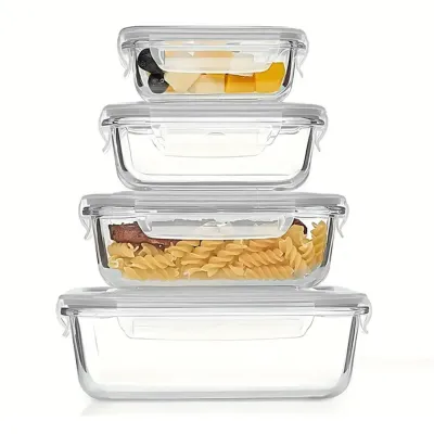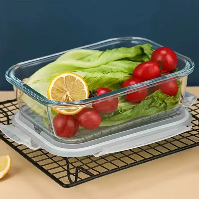 ΦΑΓΗΤΟΔΟΧΕΙΟ ΓΥΑΛΙΝΟ ΜΕ 4 ΑΣΦΑΛΕΙΕΣ ΟΡΘΟΓΩΝΙΟ 1L 20x15cm 46104PF VIOSARP