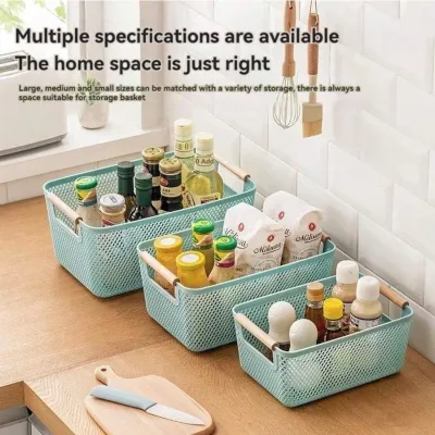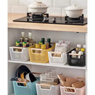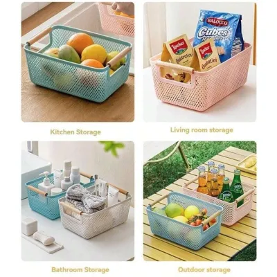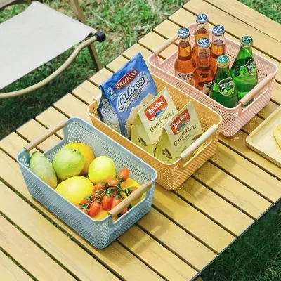 PLASTIC BASKET WITH WOODEN HANDLE VC2814 31x20x14,2cm VIOSARP
