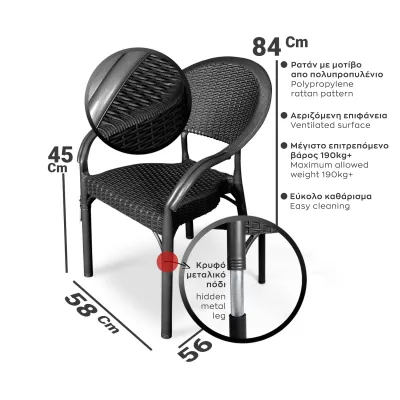 ARMCHAIR PLASTIC ΒΑΜΒΟΟ DESIGN BLACK